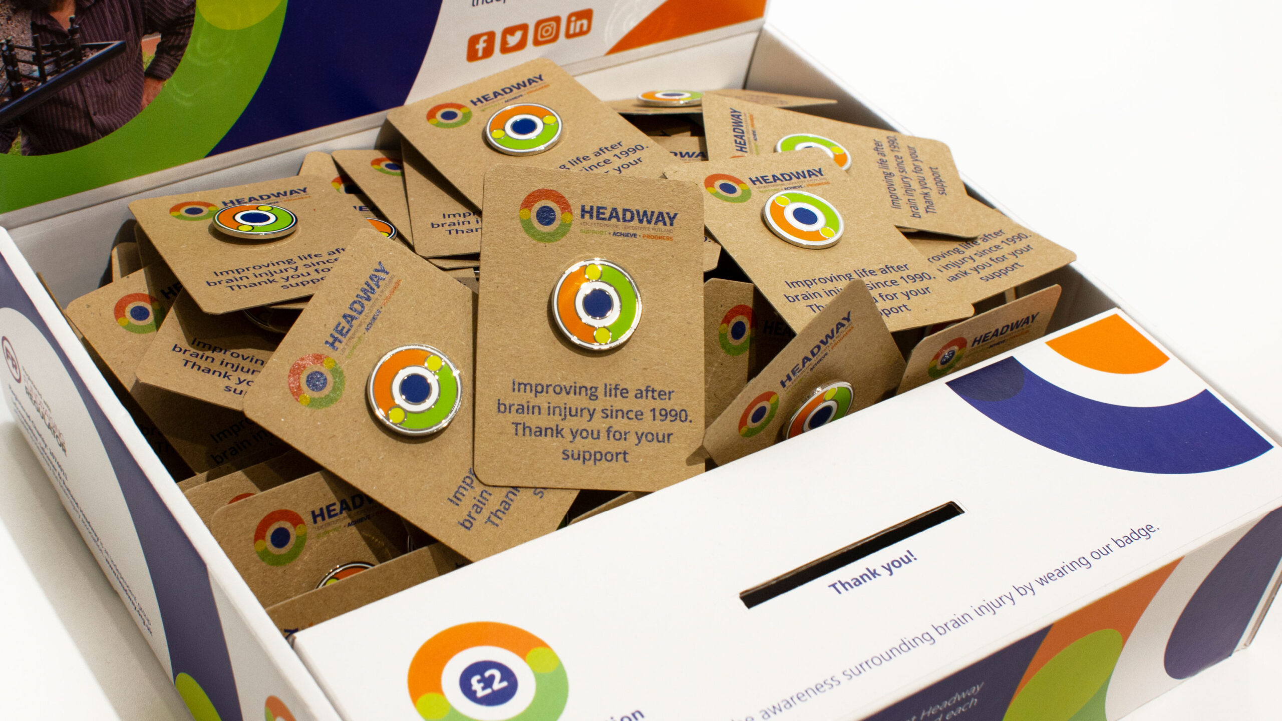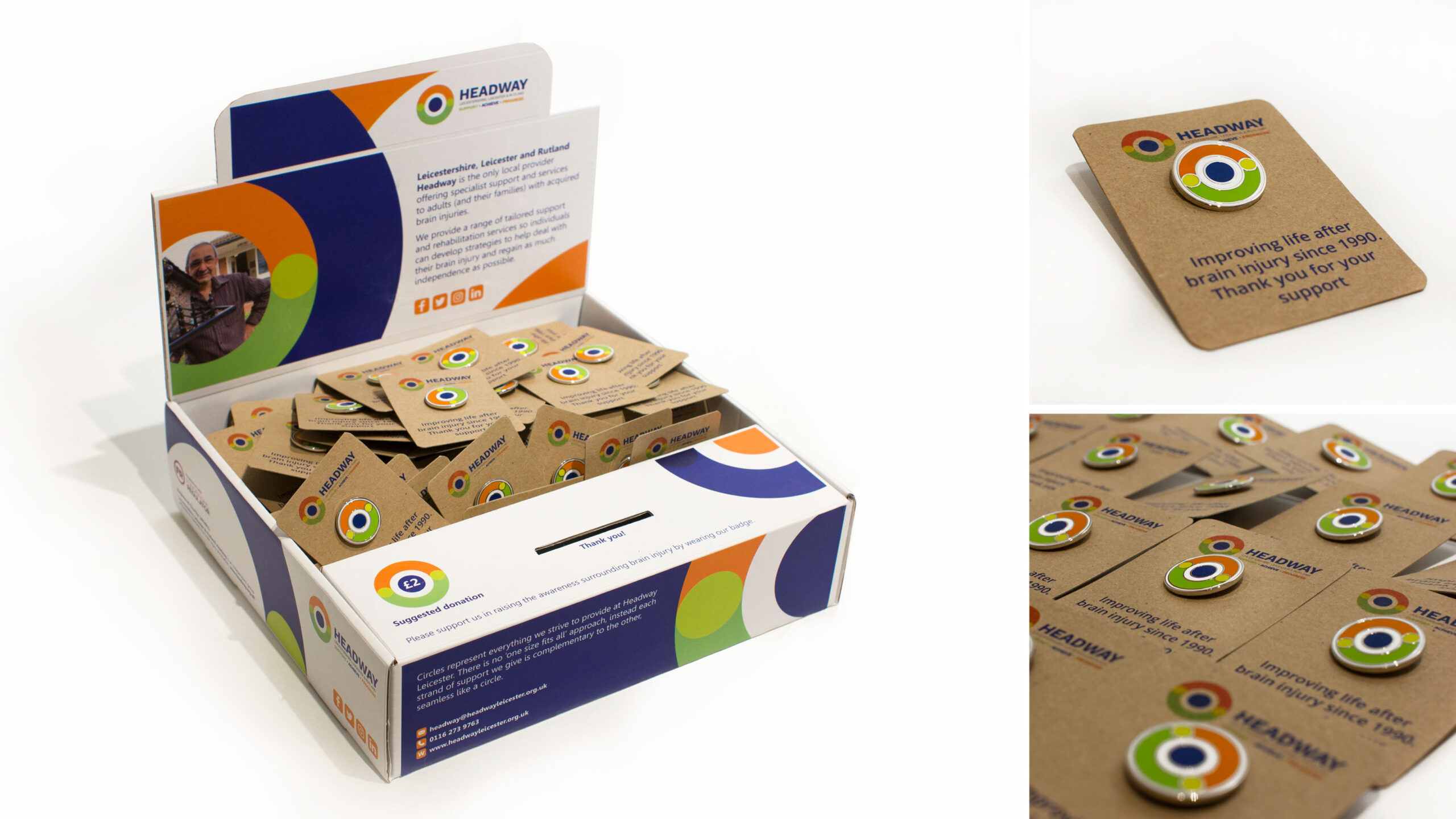 These beautifully made badges are contained in a branded counter top display unit and are available to purchase from Headway to help raise the awareness of brain injury.