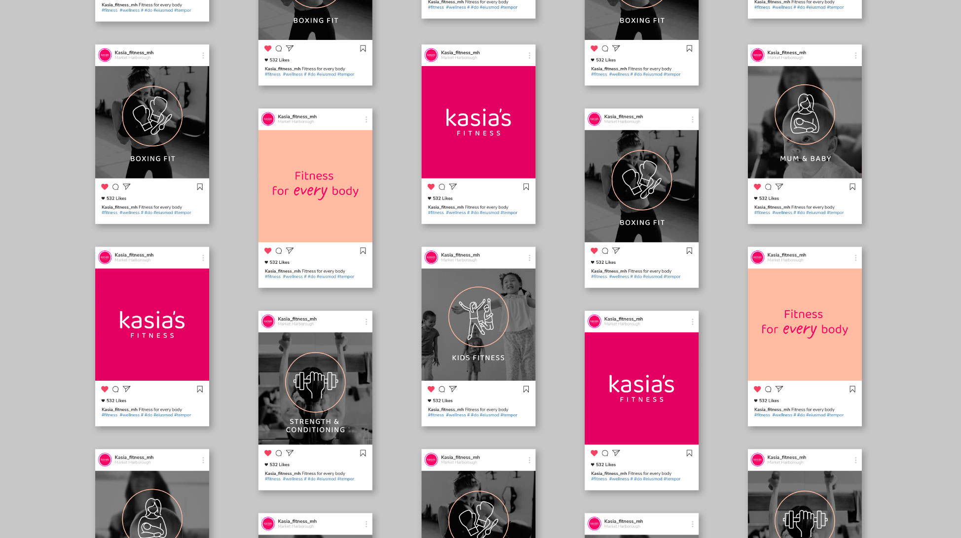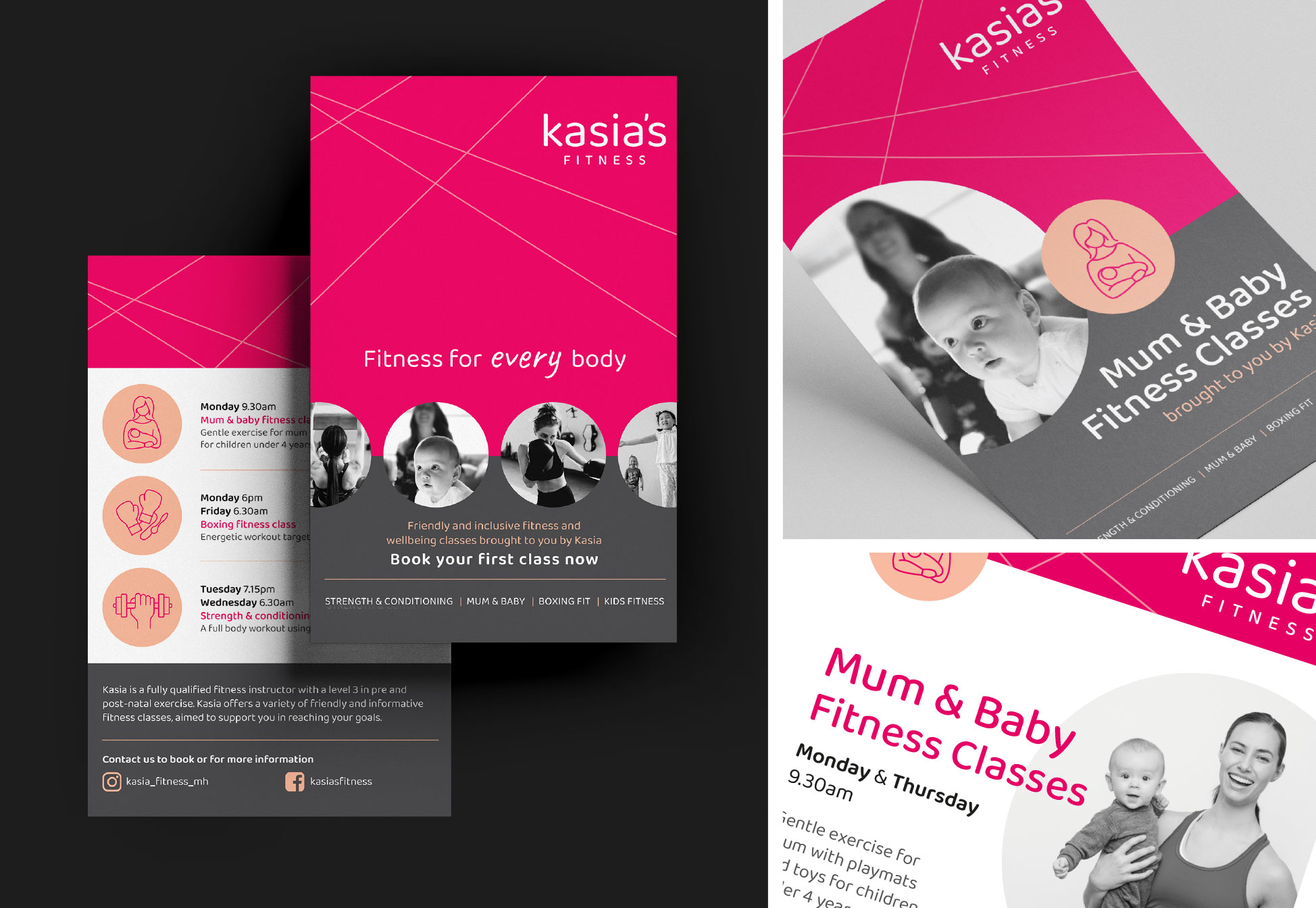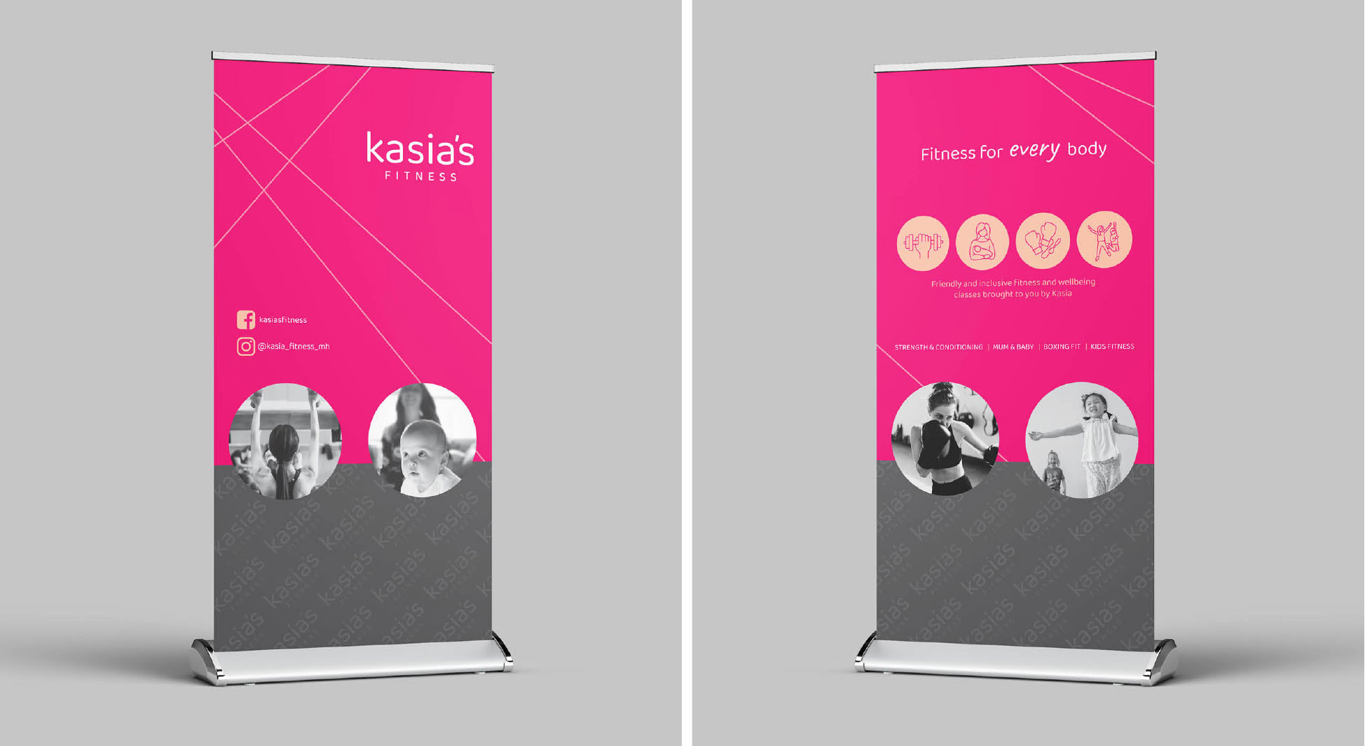 The growing popularity and status of Market Harborough based personal trainer Kasia required her to rethink her existing identity and visual styling. Kasia approached us to help. She wanted to cherry pick elements from her current identity that she liked, namely the business name and vibrant pink colour, and asked us to create an ‘evolved’ identity that would help to promote the wide range of fitness classes she offers, and that could be applied to a wide range of promotional and marketing material – from flyers and posters, to large format display banners, social media and clothing. Kasia is delighted with her new look