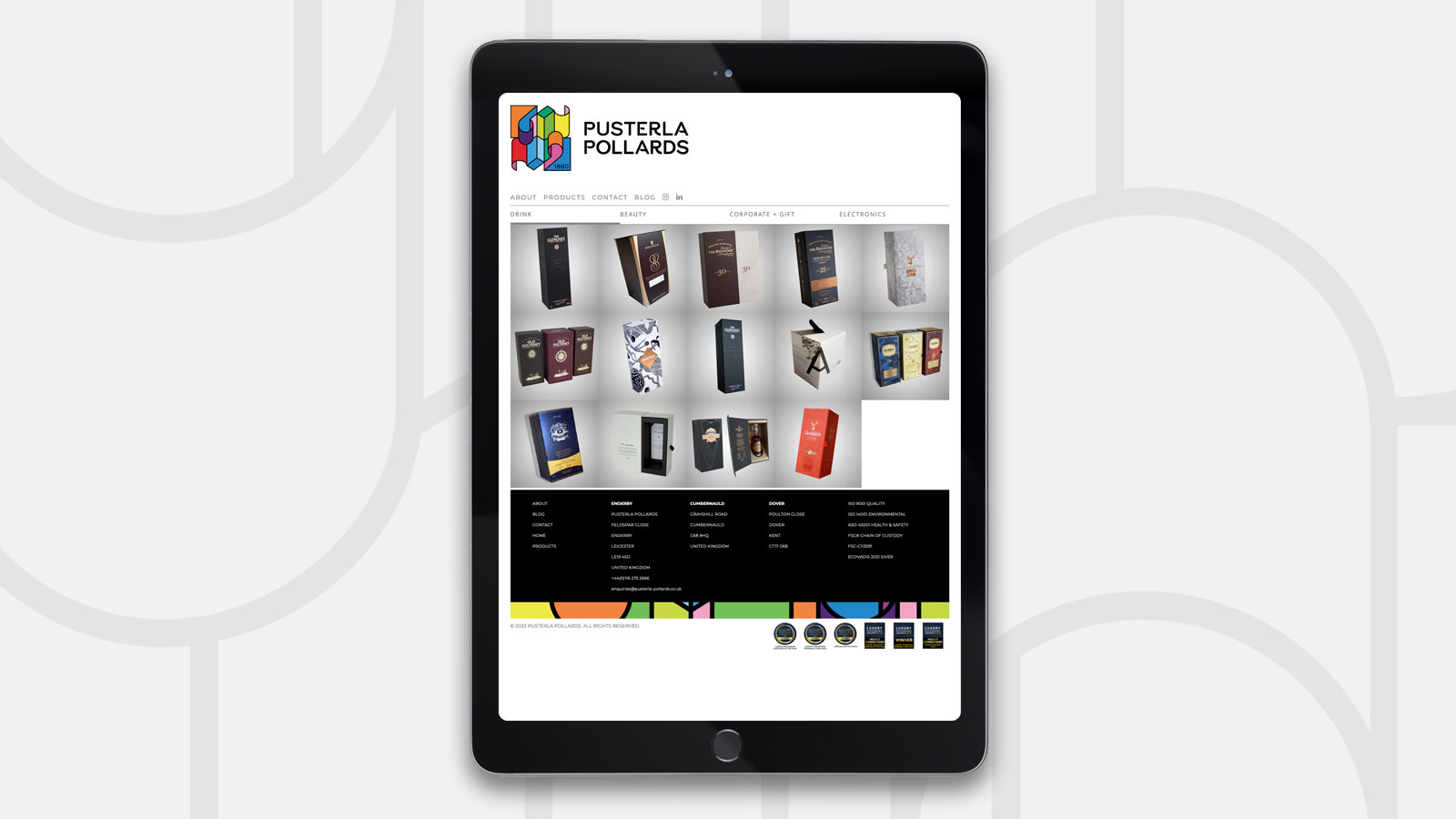 Following the aquisition of Pollard Boxes luxury packaging by the Pusterla 1880 Group in 2021 we have been instrumental in applying the new Pusterla branding to the recently formed Pusterla Pollards. Due to the strong brand reputation of Pollard Boxes in the UK, Pusterla have retained the Pollards name within the new company. As well as refining and applying the new Pusterla brand to core items such as stationery and website, we have also created a range of branded merchandise to help promote the new brand to both employees and clients.